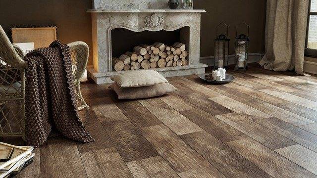Популярными считаются модели с имитацией классического Лофт – ламината. Выглядит напольное покрытие, как самый настоящий дощатый пол. Чаще всего это керамическая плитка с однотипным рисунком старого дуба.
