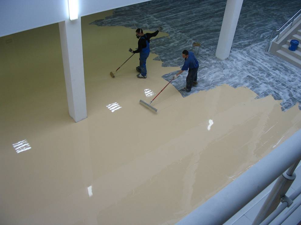 Наносят прозрачный защитный слой на наливной пол 3 мм