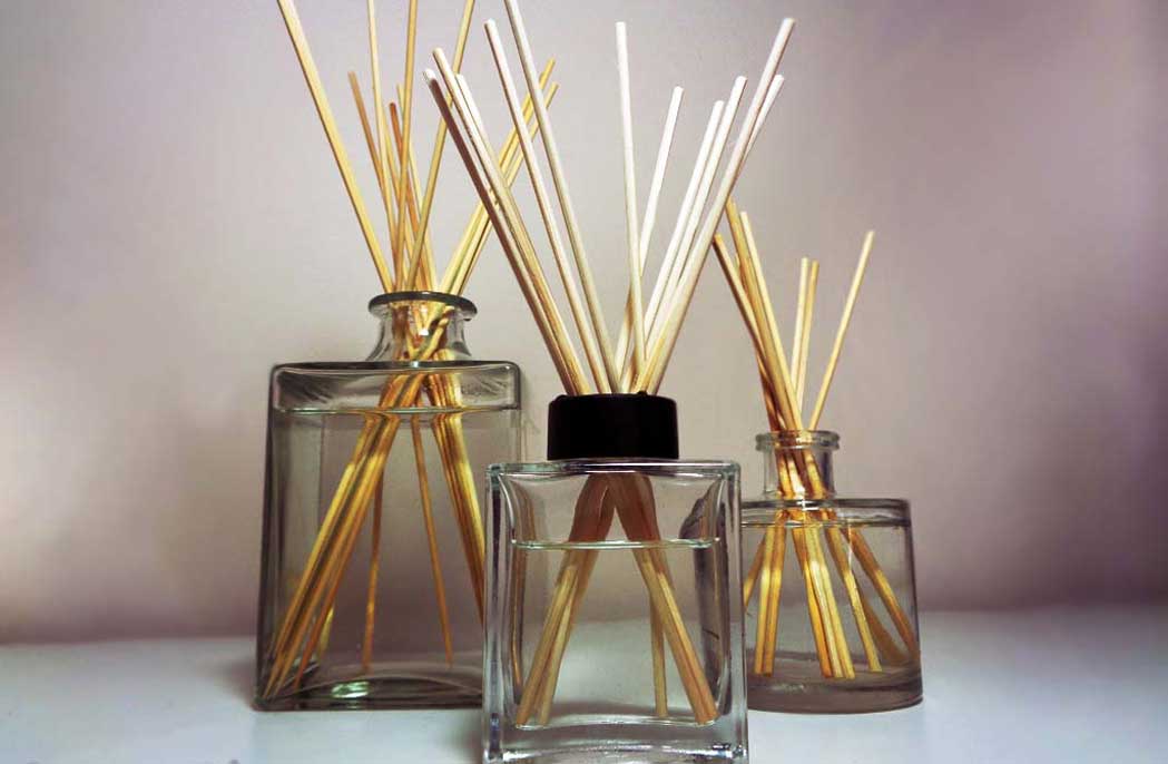 Нет ничего сложного и в изготовлении диффузора для дома с палочками своими руками. В качестве емкости можно использовать флакон от одеколона со снятым дозатором, кувшинчик с нешироким горлышком. Как вариант – банку с завинчивающейся крышкой. В последнем случае придется просверлить небольшое отверстие, диаметра которого хватит, чтобы вставить палочки. Необычный, но простой в изготовлении самодельный диффузор готов!