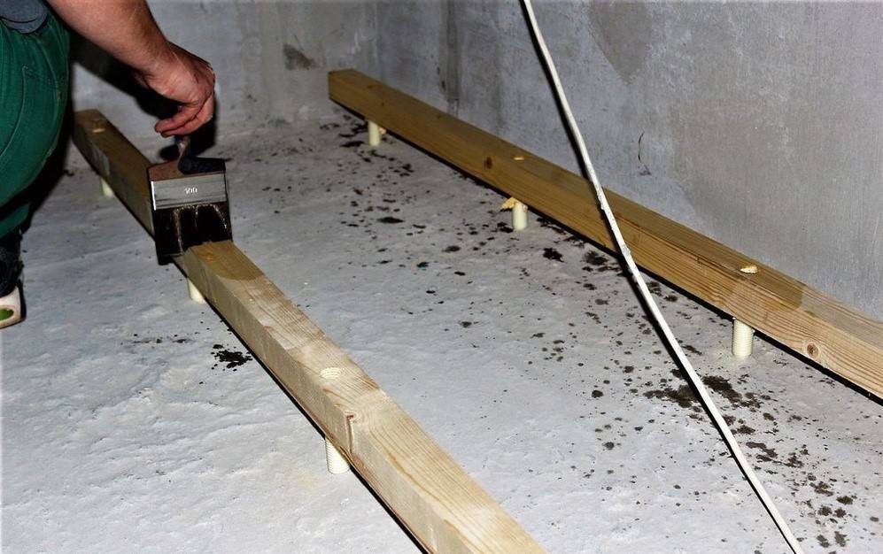 В этом случае крайне важно укрепить лаги максимально надежно, а также создать гидроизолирующие и теплоизолирующие слои (слой звукоизоляции). Для этих целей обустраивается специальное основание: