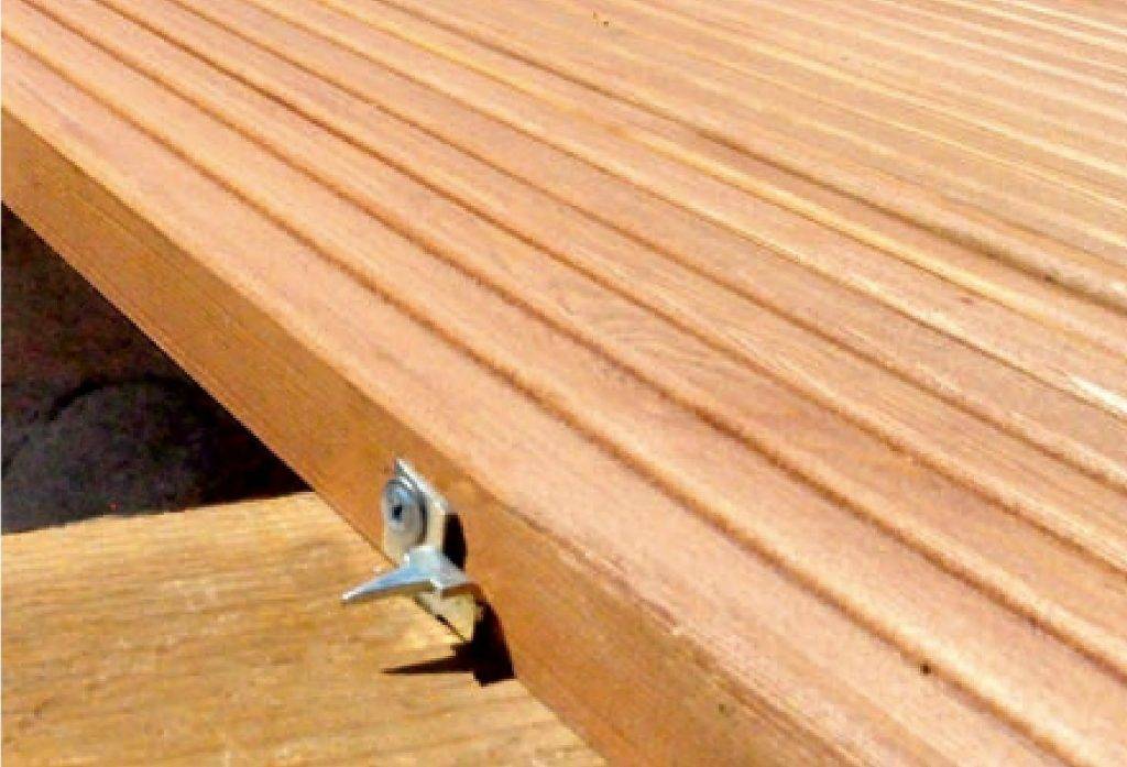 При скрытом креплении верхушки гвоздей и саморезов прячутся в предназначенные углубления, которые впоследствии закрываются хорошо подогнанными деревянными пробками. Шпунтованные доски могут монтироваться саморезами или гвоздями в пазы.