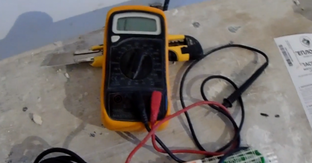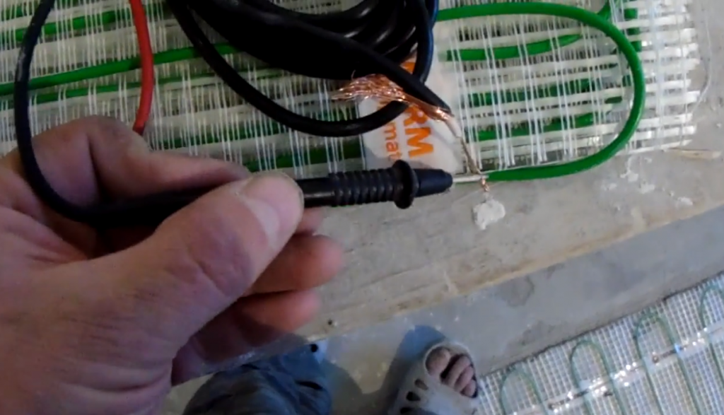 Вторым щупом аккуратно касаемся второго выхода нагревательного мата;