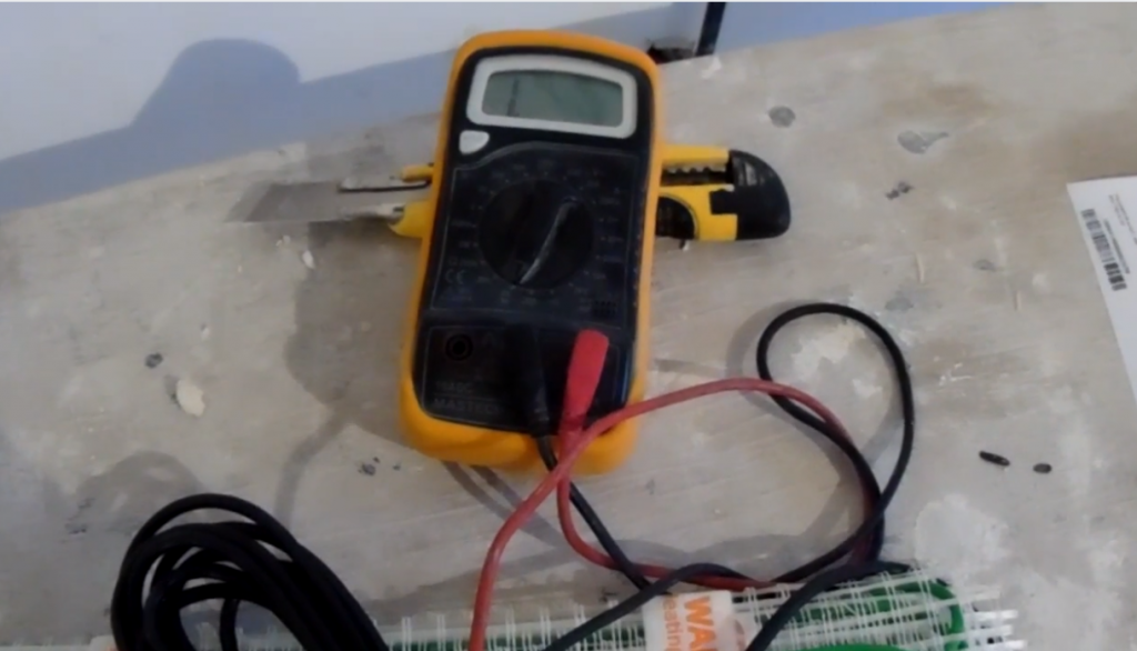 Обязательно следует проверить целостность изоляционной оболочки. Для этого следует свободным щупом коснуться экрана провода. Если все хорошо, и защита целая, на экране мультиметра должна появиться 1. В противном случае придется принять определенные меры для устранения возникшей ситуации, так как укладка такого мата является небезопасной.