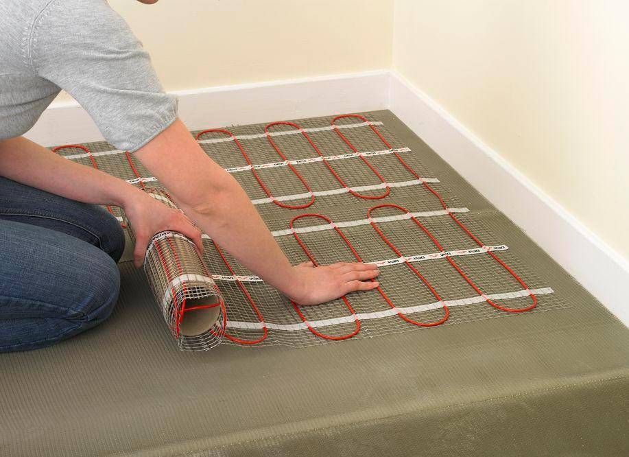 Процесс укладки матов простой, их пластиковая основа легко режется, доступно выполнять необходимые изгибы. Плюс такой систем — нет необходимости вбетонной стяжке, так как используется кабель небольшого диаметра, а плитка устанавливается на тонкий плиточный клей.