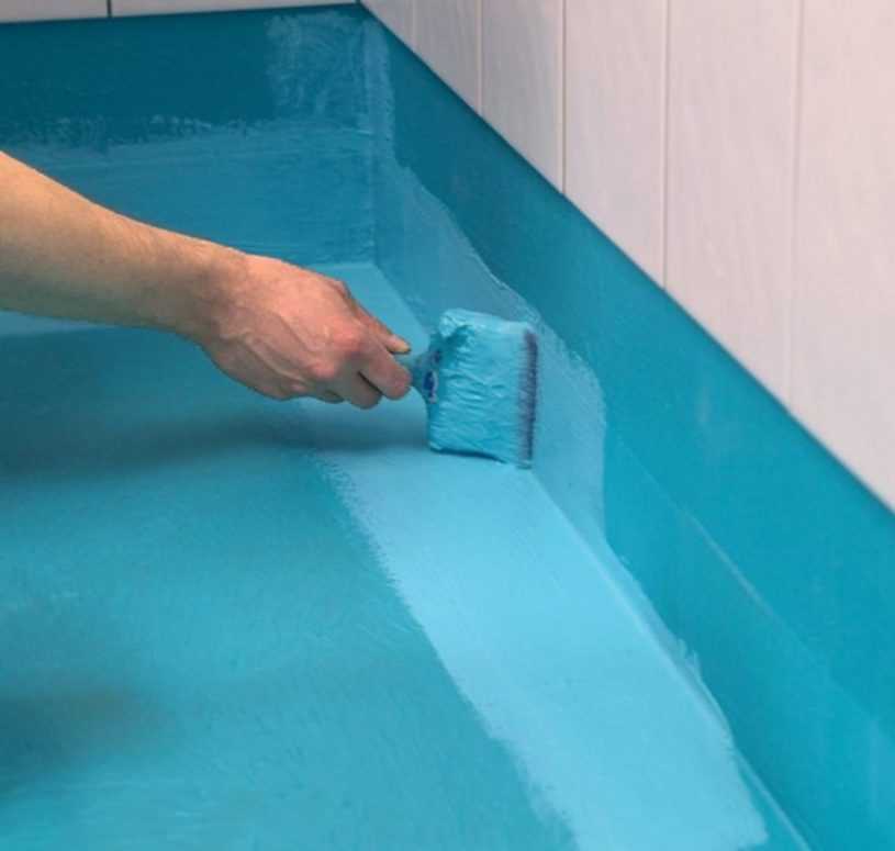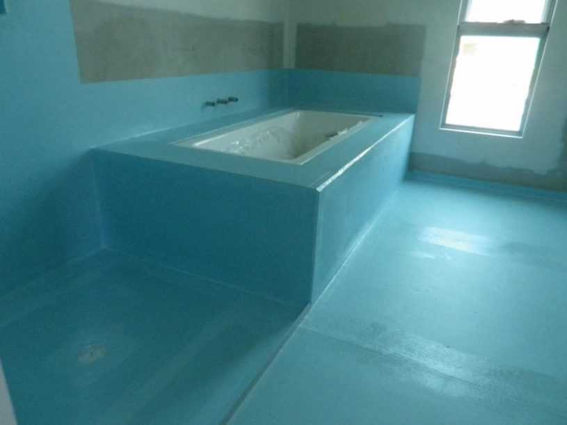 У многочисленных способов устройства гидрозащиты пола единая цель – создание сплошного покрытия, по форме напоминающего поддон с 10-20сантиметровыми бортиками на стенах. Сделанная таким методом своеобразная емкость будет собирать стекающий по стенам струйками конденсат, пролитую и расплескавшуюся воду. Монолитный слой гидроизоляции не пропустит влагу в перекрытие, предотвратит разрушение основания. Заодно избавит от гнили, расселения грибков и от выделяемых данными неприятными представителями биосферы вредных ароматов.