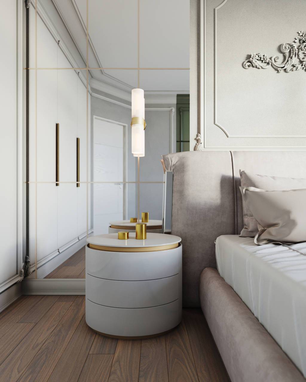 Классика. Классический стиль в современном понимании – это сочетание нескольких течений, таких как ренессанс, барокко, рококо, модерн и минимализм. Спальня в классическом стиле обязательно ассоциируется с роскошью. Здесь присутствуют тяжелые складчатые драпировки, хрустальные люстры, зеркала в тяжелых рамах, натуральное дерево, золотистые и серебристые элементы декора. Придать интерьеру еще больший шик помогают антикварные вещи, бархатная обивка, статусные люстры и светильники.
