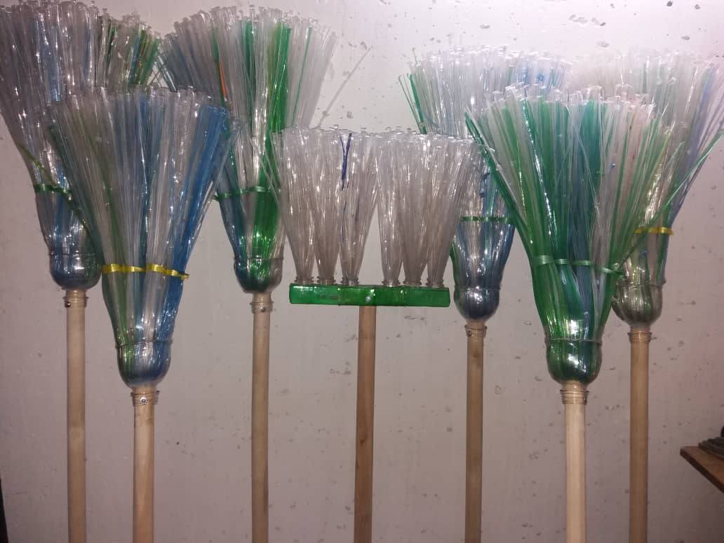 Полимеры. Средства для уборки, изготовленные из полимеров, являются синтетическими аналогами натуральных изделий. Существует очень много разнообразных вариантов дизайна этих приспособлений. Экземпляры из полимеров могут быть окрашены в разные цвета и оттенки. Рабочая сторона нередко производится из высокопрочной пластмассовой проволоки. Один из видов синтетических изделий – это инструмент, сделанный из бесполезных пластиковых бутылок.