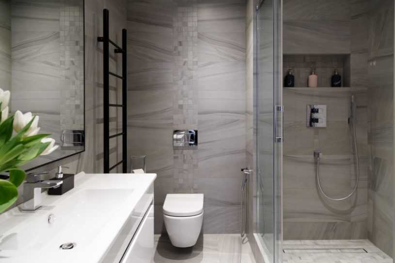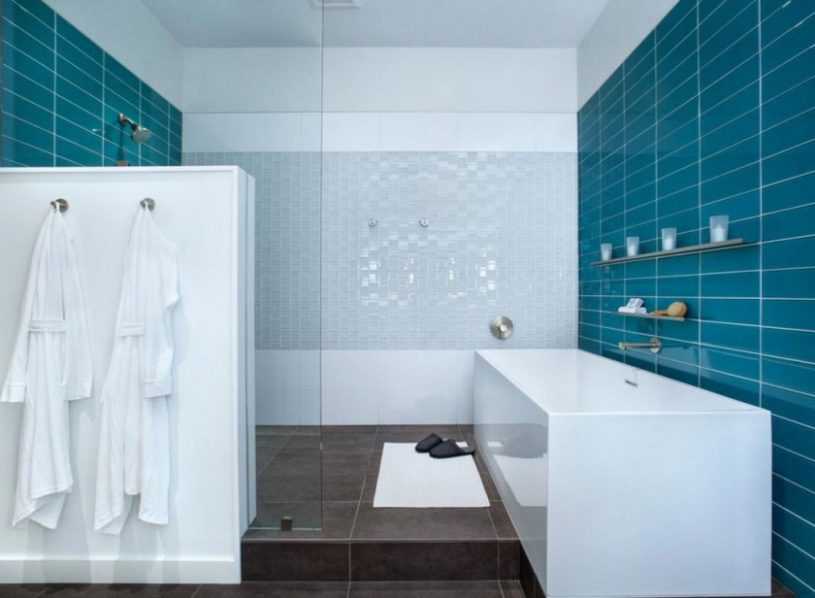 В душевой важно распределить керамические детали по всей длине комнаты. В случае когда отделка проводится в ванной комнате, то отделочные работы осуществляются на участках между стеной и возле границы ванны.