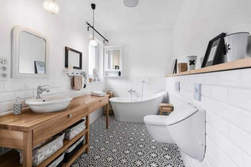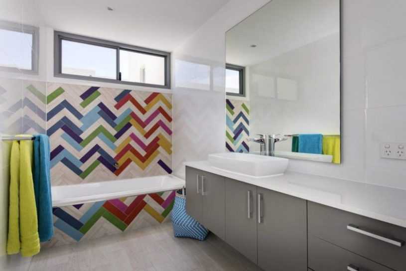 Если же вы желаете сузить комнату, по ее углам выкладывают контрастную плитку, имитирующую колонны, а зрительно уменьшить высоту помещения позволяют горизонтальные узоры с крупными элементами. Какой бы вариант вы ни выбрали, главное – заранее составить эскиз и убедиться, что схему можно реализовать на метраже вашей ванной, а важные составляющие узора не перекрываются сантехникой и мебелью.