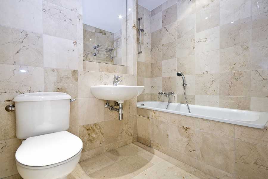 Уйдя от ярких цветов и масштабных рисунков на поверхности, вы сможете визуально расширить пространство. Возможна укладка плитки с неброским, чуть заметным узором или орнаментом.