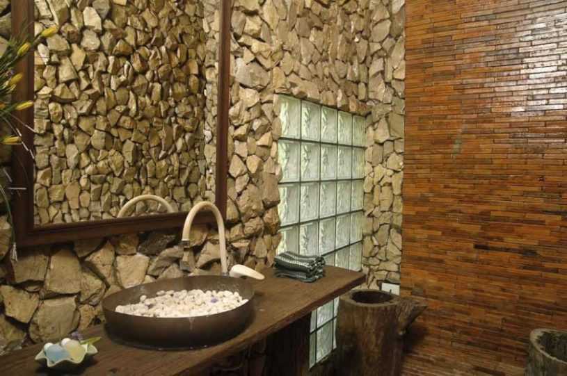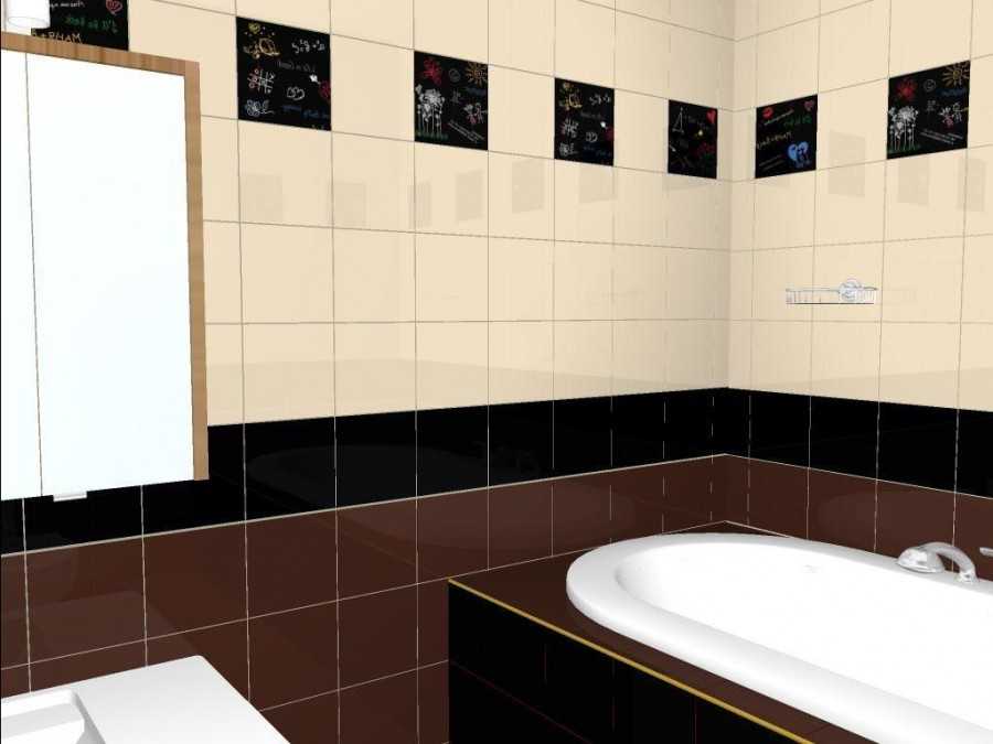 Из этих элементов составляются различные варианты оформления. Классическим решением считается облицовка нижней части стены темной плиткой, а верхней более светлой с укладкой между ними бордюрной полосы. Любители нестандартного подхода могут подобрать материал одной фактуры, но разных оттенков или выполнить основную часть покрытия в пастельных тонах, а на одной из стен создать яркий акцент (панно или фрагмент контрастного цвета).
