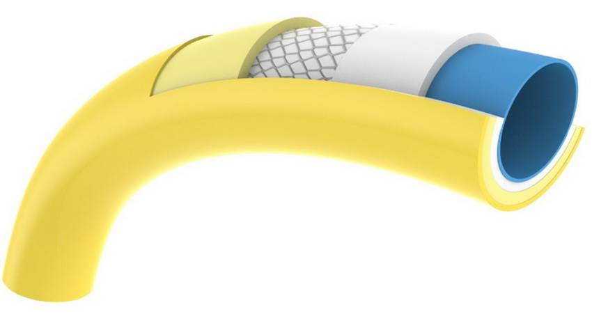 Инновационное изобретение последних лет. Уникальная конструкция «шланг в шланге». Внутренний слой из каучуковой резины, имеет высокую способность к растягиванию. Второй, внешний слой выполнен из нейлона, создан для ограничения растягивания внутреннего слоя.