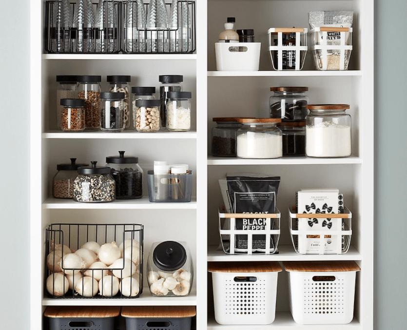 Иными словами, предметы одной категории должны располагаться рядом: посуда с посудой, контейнеры и банки вместе, фольга, пленка для запекания и пакеты для завтраков тоже в строго определенном месте. Это поможет впоследствии сразу находить нужный предмет, а не объявлять в федеральный розыск любимую кружку или пакетик со специями…