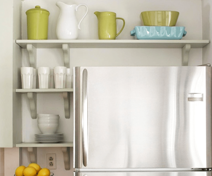 Практически на каждой кухне имеется свободное пространство. Часто оно находится между холодильником и стеной. Туда можно поместить вертикальную полку на колесиках. Такое приспособление может послужить отличным местом для хранения специй, бутылок, баночек и т.д.