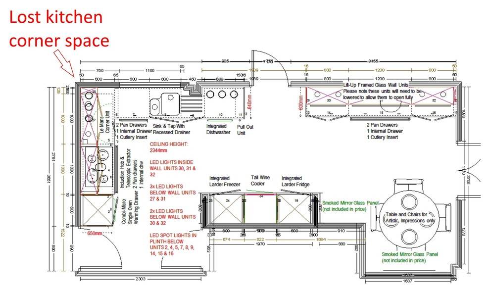 Обустройство кухни с правильным использованием углов помещения позволяет максимально эргономично разместить там большое количество предметов.