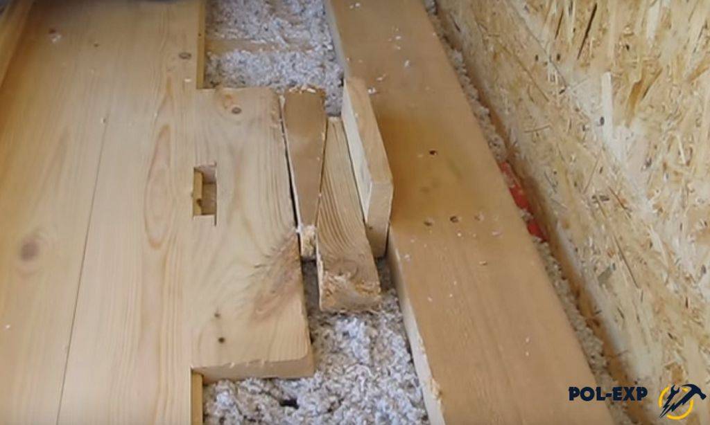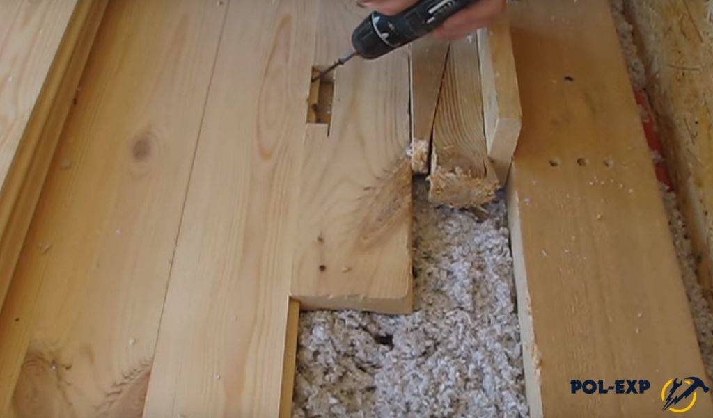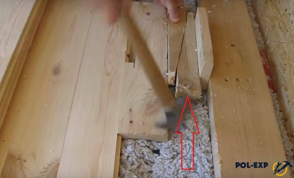 Стяжка деревянного пола при помощи самодельных деревянных клиньев
