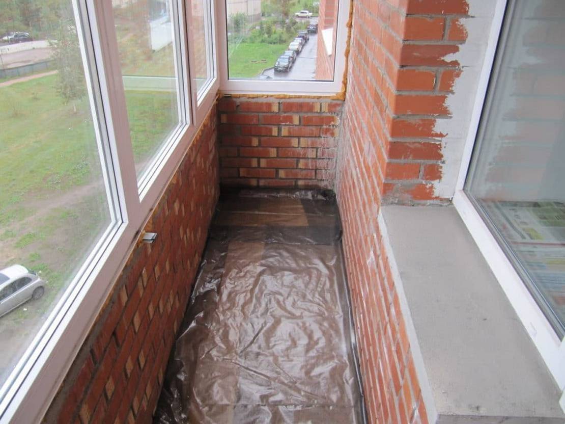 - На плиту балкона укладывается слой гидроизоляции;