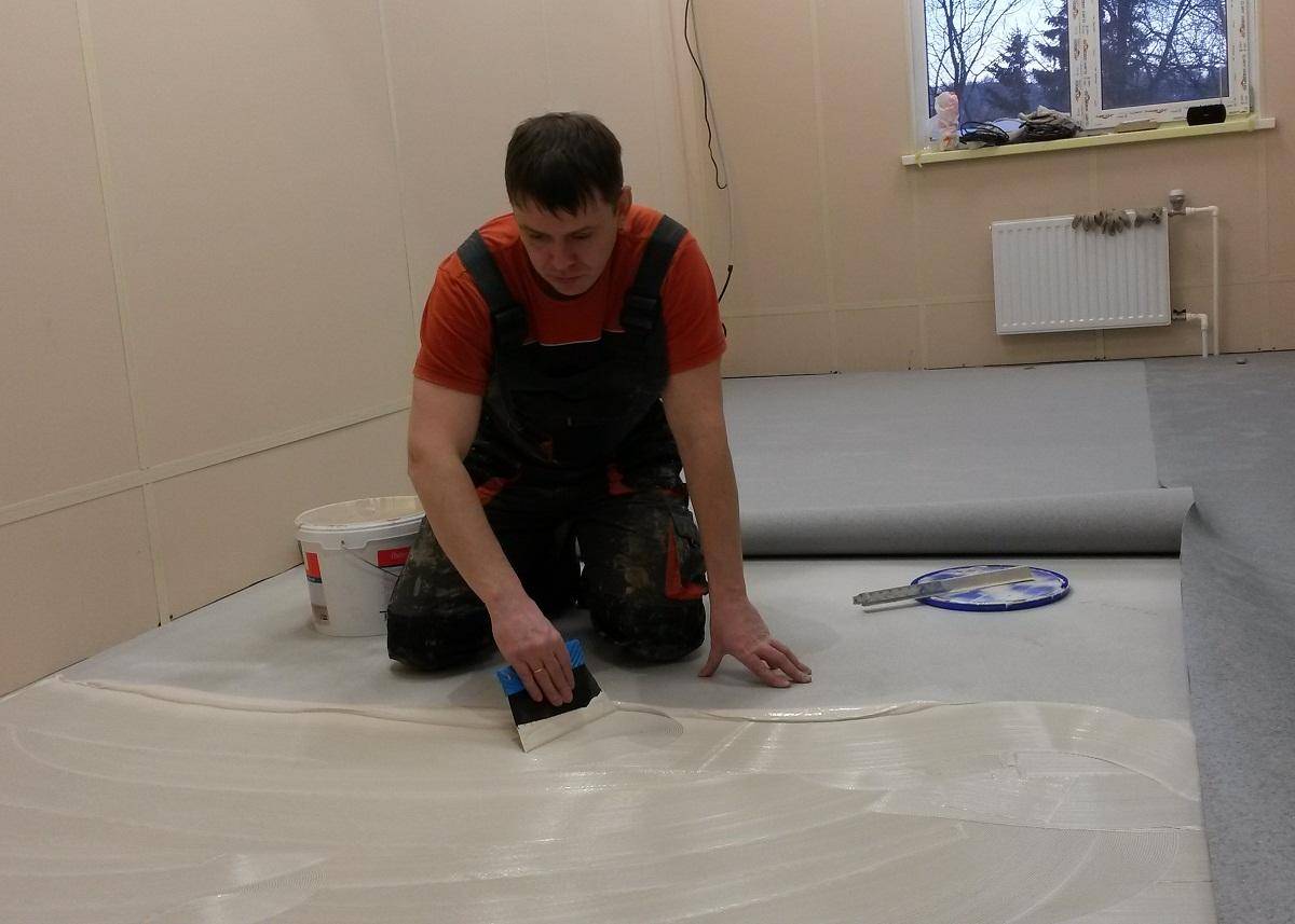 Чтобы постелить ковролин на бетонный пол, рекомендуется использовать клей