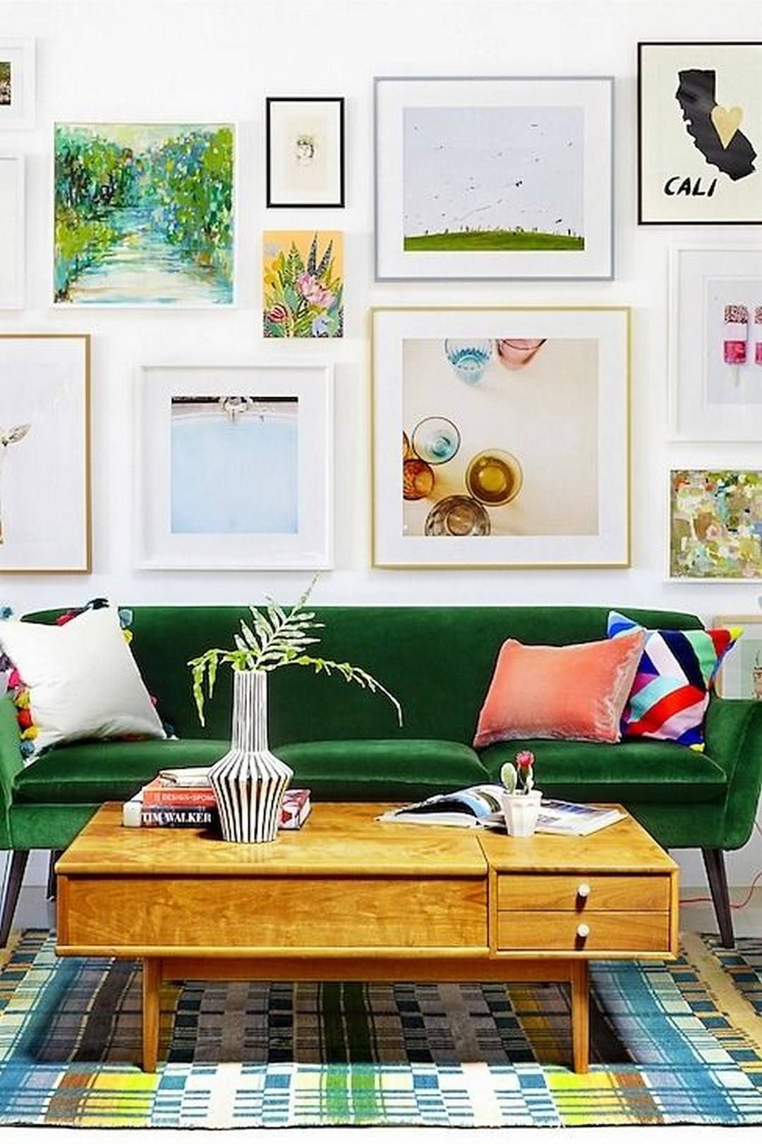 Вы можете вешать картины различными способами, но придерживайтесь основного правила — от 150 до 170 сантиметров от пола до центра картины.