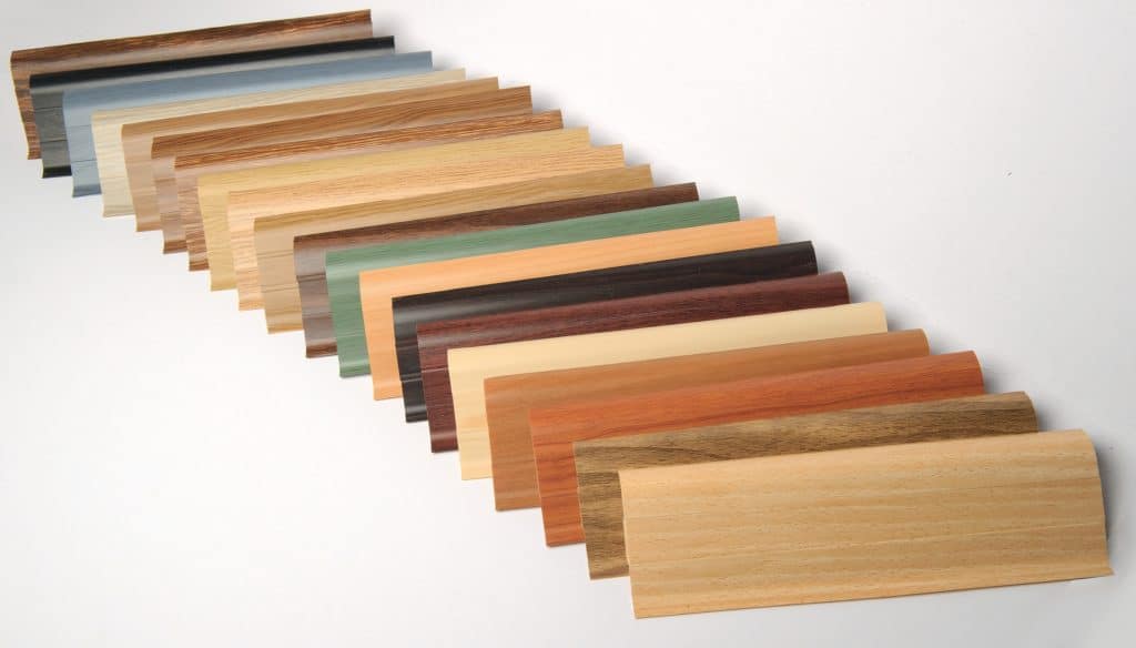 Деревянные, шпонированные, полиуретановые и дюрополимеровые плинтуса прекрасно поддаются окрашиванию.