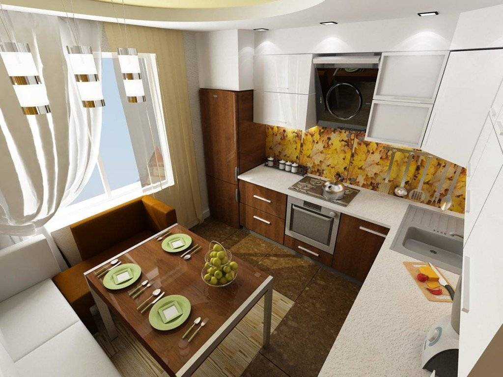 Угловая планировка маленькой кухни без холодильника