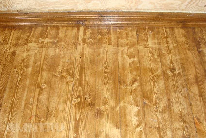 Доски шлифуют вручную или шлиф машиной, затем пропитывают составами. Между двумя обработками выдерживают не меньше 10 – 12 часов, последний слой сушат с открытыми окнами и дверями. Излишки восковой пропитки убирают сухими тряпками.