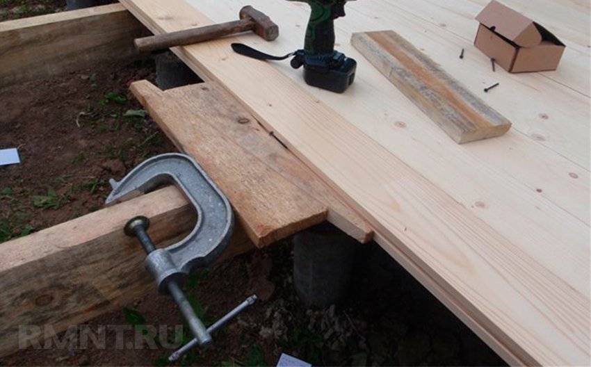 - Оптимальным вариантом для настила станут струганые доски, не имеющие замковую систему.