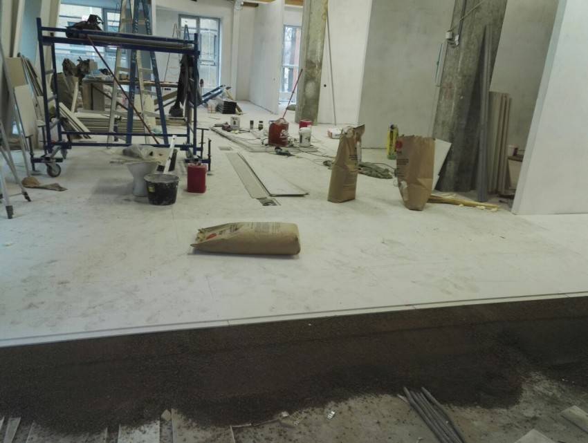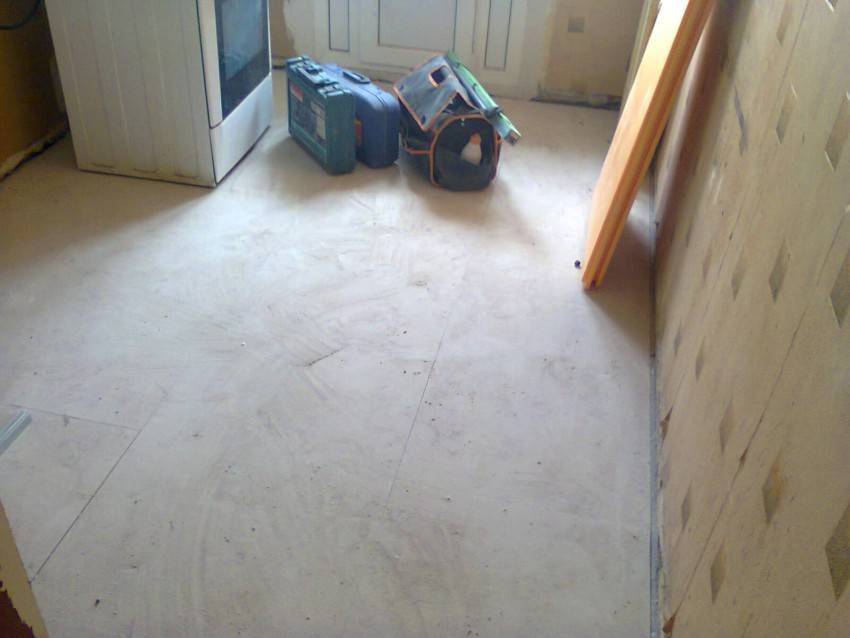 Последствия разлития воды на пол с сухой стяжкой в основании.