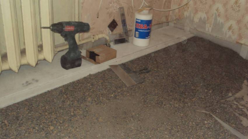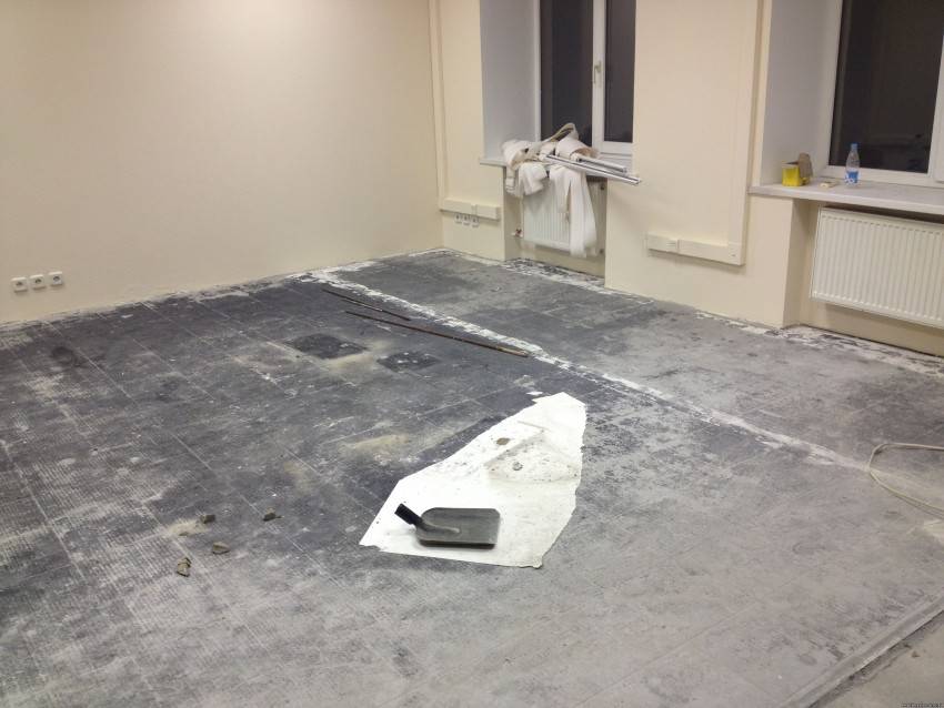 После того как Вы определились с тем какую стяжку пола будете делать необходимо подготовить основание для заливки. Для этого необходимо снять старое напольное покрытие и все отслоившиеся части основания и желательно пропылесосить, чтобы обеспылить поверхность.