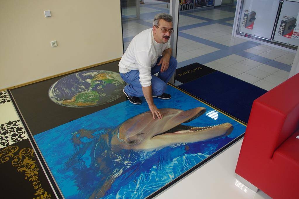 - Можно украсить пол фотореалистичной картинкой, оптической иллюзией.
