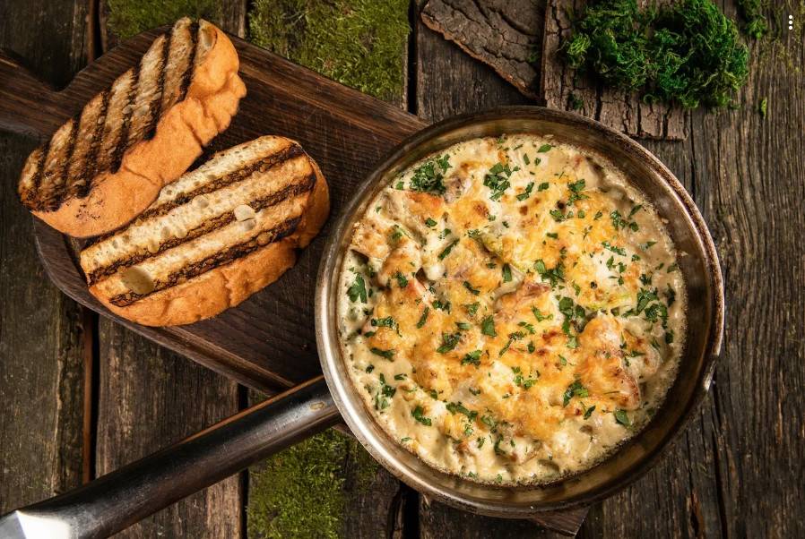 Морковь бланшируем до полуготовности и крупно нарезаем. Добавляем так же нарезанный кабачок. Берем сковороду, на сливочном масле обжариваем репчатый лук, чеснок, добавляем наполовину готовое мясо зайца и обжариваем до румяной корочки. Выкладываем овощи, зеленый горошек и обжариваем еще 1,5 минуты, вливаем вино и выпариваем его. Добавляем орегано, сливки, соль, перец и доводим по кипения. Посыпаем сыром, ставим в духовку на 180 градусов и запекаем 8 минут до появления румяной корочки. Готовое блюдо посыпаем мелко рубленной петрушкой и подаем с хрустящим обжаренным тостом.
