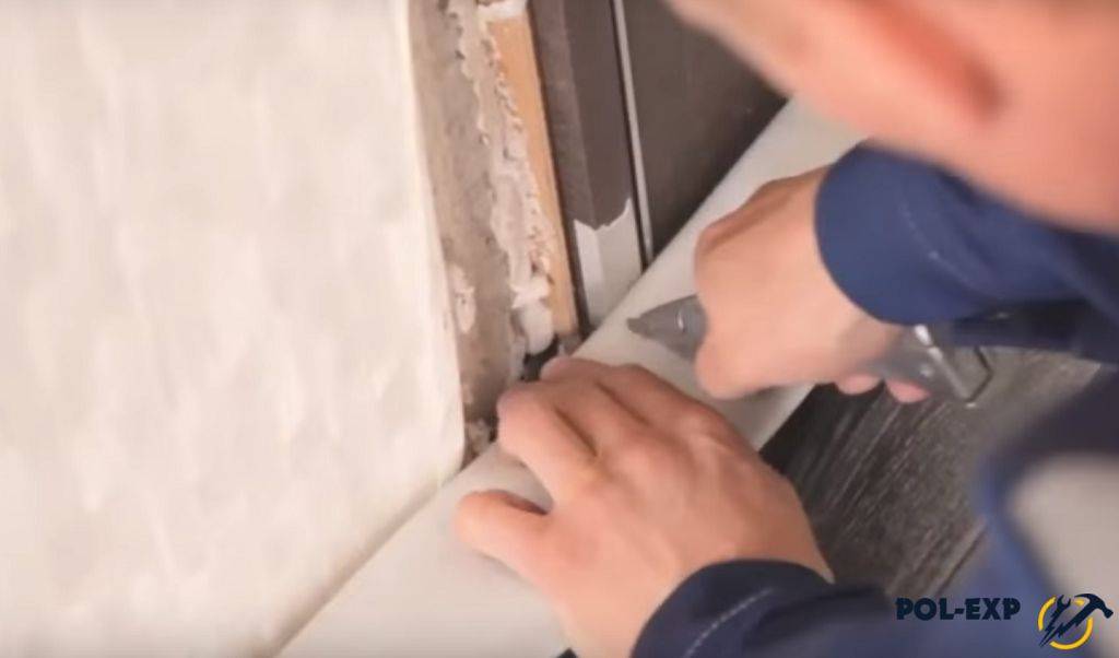 Подрезка линолеума у двери