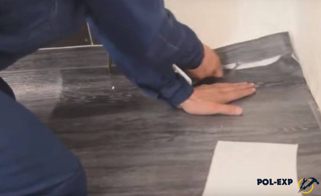 Линолеум обрезается вдоль стены