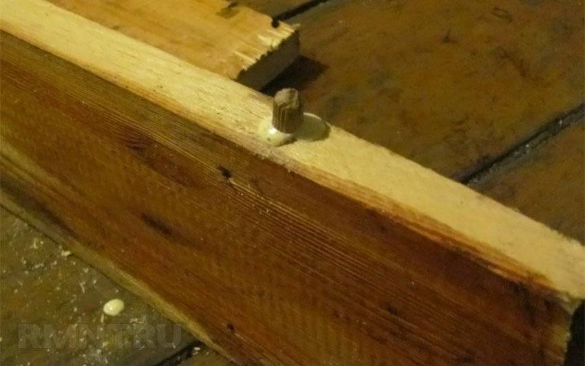 Штифты забивают с шагом в 30–40 см, здесь очень важно равномерно разделить глубину их забивки в обе стороны.