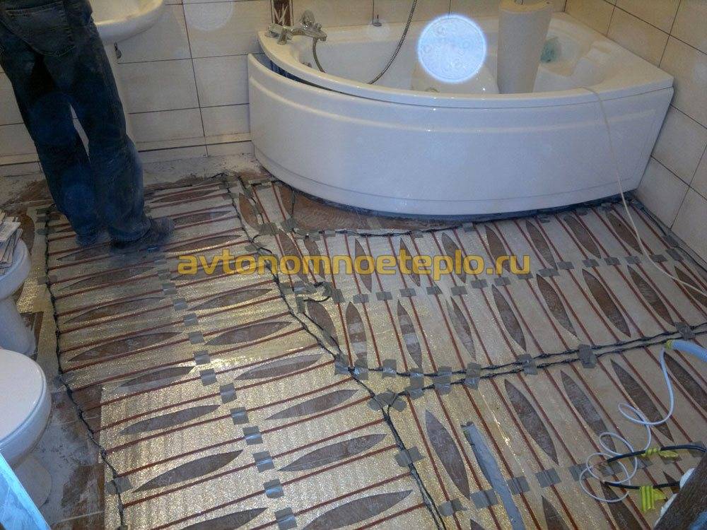 Использование такой системы теплого пола под плитку также не потребует заливки стяжки – кафельное покрытие укладывается на слой плиточного клея непосредственно на нагревательные элементы.
