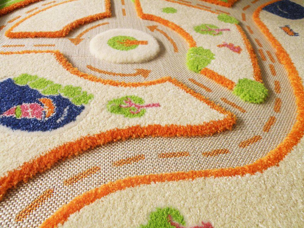 Тематическая картина на ковре поможет развить абстрактное мышление у ребенка, развить фантазию и привить чувство прекрасного. Но объемные рисунки лучше использовать в игровой зоне, а остальное покрытие должно иметь гладкую поверхность для безопасных активных игр.