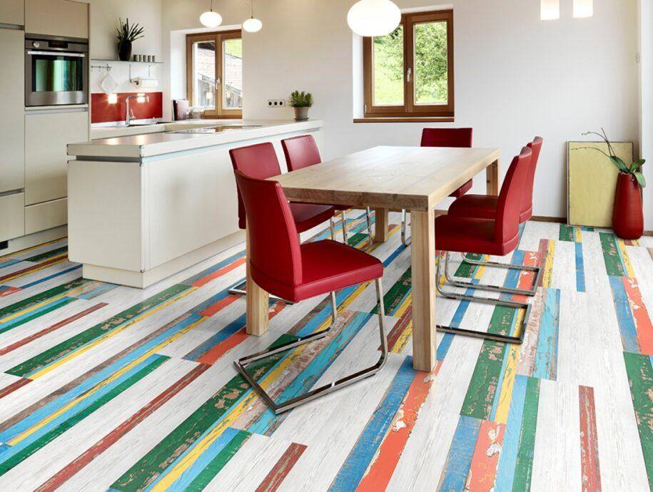 Пол, облицованный поливинилхлоридом, то есть линолеумом, идеально подходит для кухни. Почему? Этот материал является огнестойким, обеспечивая безопасность пользователям. Он также отлично подавляет шум, повышая тем самым удобство в кухне, например, эффективно подавляет даже звук шагов в часто используемом месте.