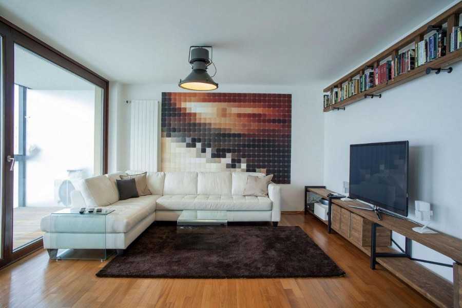 При выборе напольного покрытия для зала или гостиной можно сделать акцент на привлекательный внешний вид. Помимо этого, следует учесть износостойкость и устойчивость к деформациям.