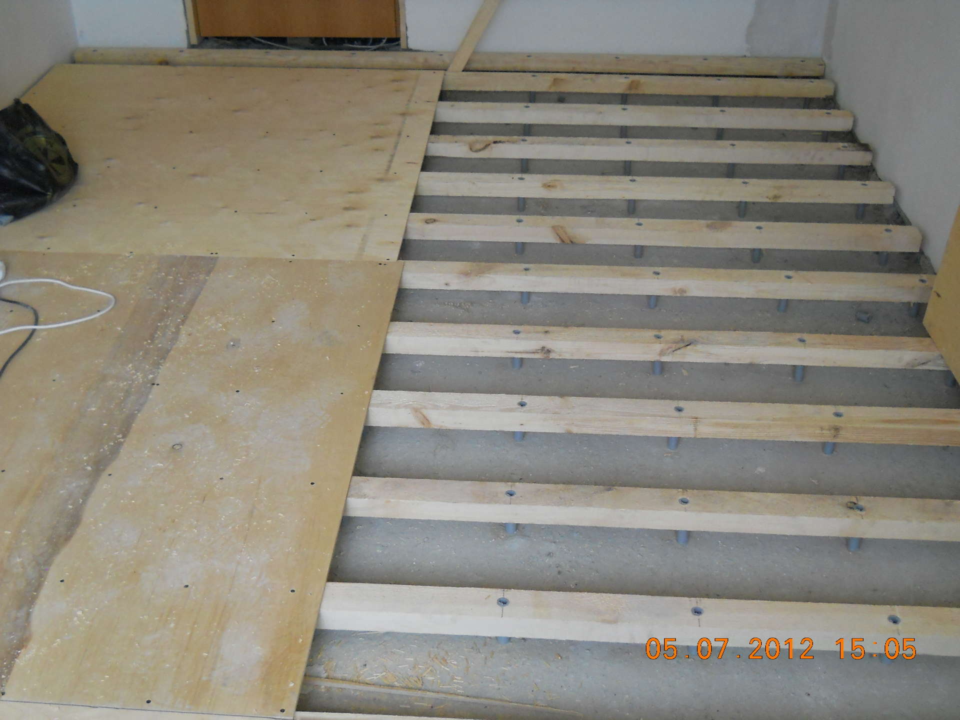 На фото – задача, как выровнять полы фанерой, решается в самом очевидном варианте, когда всё выполняется буквально за полчаса, а удовольствие «на всю жизнь»
