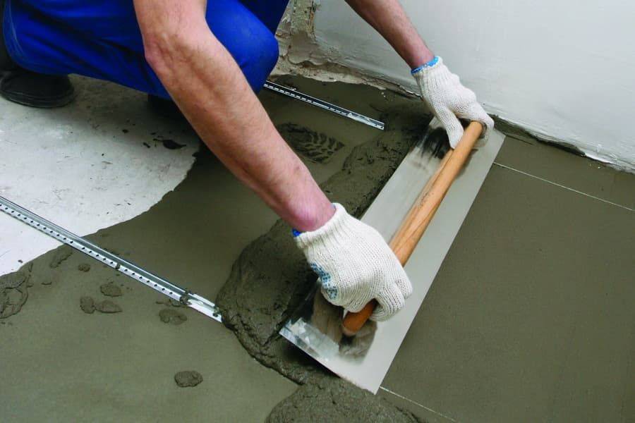 Уже спустя несколько часов после монтажа черновой стяжки на поверхности могут образоваться небольшие неровности и сколы. Заливать ещё одну стяжку – не самая лучшая идея. Чтобы выровнять пол перед установкой напольного покрытия, многие используют плиточный клей. Такая финишная отделка актуальна, как для дальнейшей установки плитки, так и для монтажа ламината или линолеума.