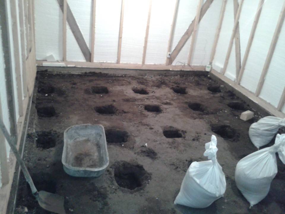 Полы можно устраивать как на начальном этапе одновременно с монтажом фундамента, так и в уже готовом помещении. Последовательность работ будет одинакова: