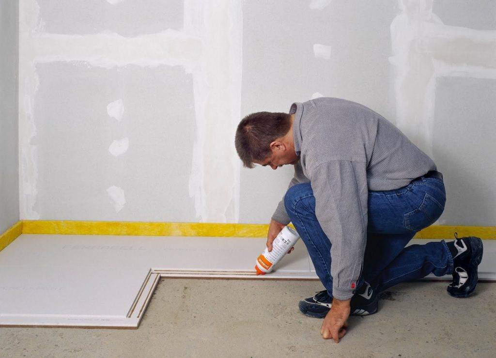 При стыковке, кромки элементов пола проклеиваются с помощью герметика, монтажной пени или специального состава «жидкие гвозди», наносимого строительным пистолетом.