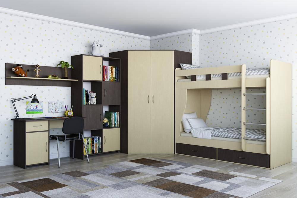 Можно поступить практичнее — и приобрести готовую комнату для ребенка в салоне «Орбита Мебель». В комплект входят кровать, шкаф с ящиками, навесная полка и пенал. Впоследствии кроватка младенца просто заменяется большой кроватью по возрасту ребенка.