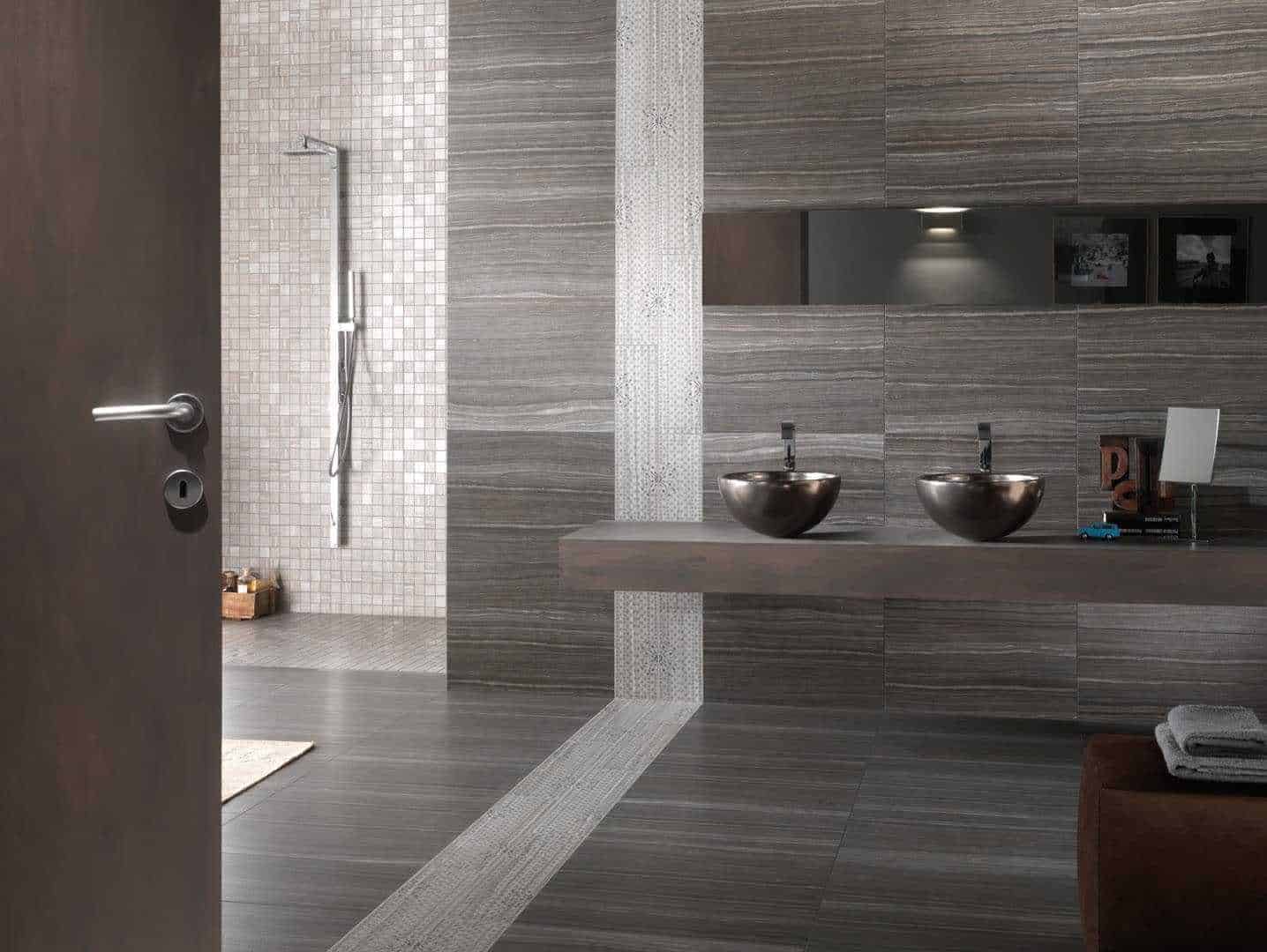 Можно сказать, что число дизайнерских решений по отделке ванных комнат намного превышает число дизайнеров, поскольку большинство вариантов принимают сами владельцы жилья, учитывая рекомендации опытных мастеров. Поэтому в статье будет приведено только несколько лучших видов применения напольной и настенной плитки из разных ценовых категорий. В этих дизайнах комплект состоит не только из самих плит, но также включает бордюр, панно и мозаики.