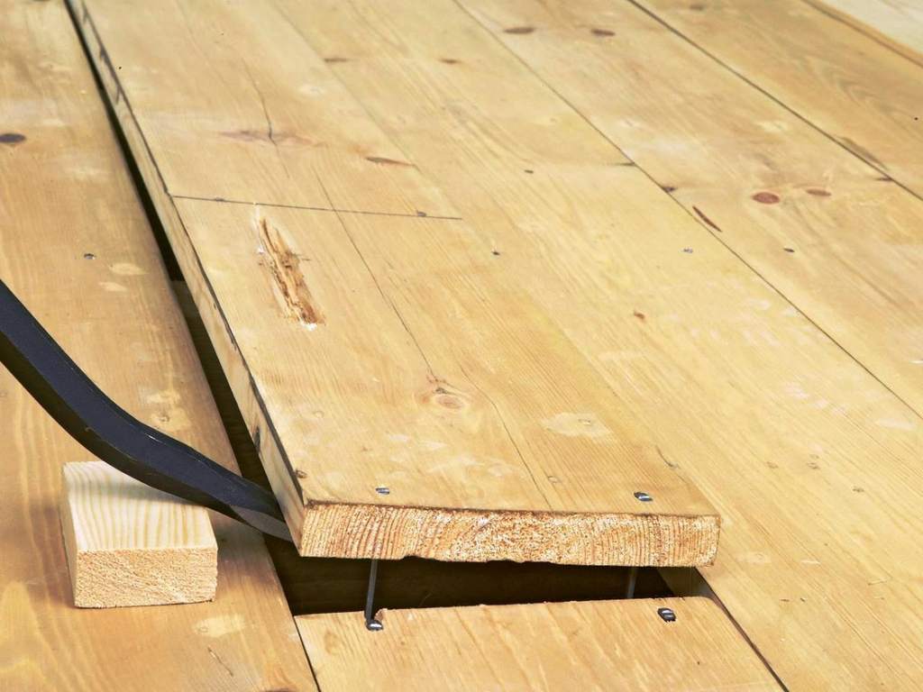 Прежде чем начать демонтаж , нужно внимательно изучить состояние дерева . Старые деревянные половицы реагируют на любые колебания температуры и быстро деформируются. При хорошем качестве дерева не стоит забывать, что нельзя укладывать плитку прямо на него. Если проигнорировать подготовку и воспользоваться промежуточными материалами , это скажется на сроках и стоимости ремонта.