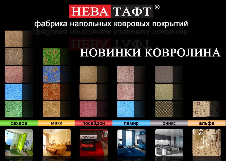 Завод Neva Taft производит ковры с использованием оборудования и материалов, импортированных из-за рубежа: Франции, Германии и Бельгии. Все продукты мятные и антистатические. Единственная компания, которая может производить коврики по дизайну заказчика.