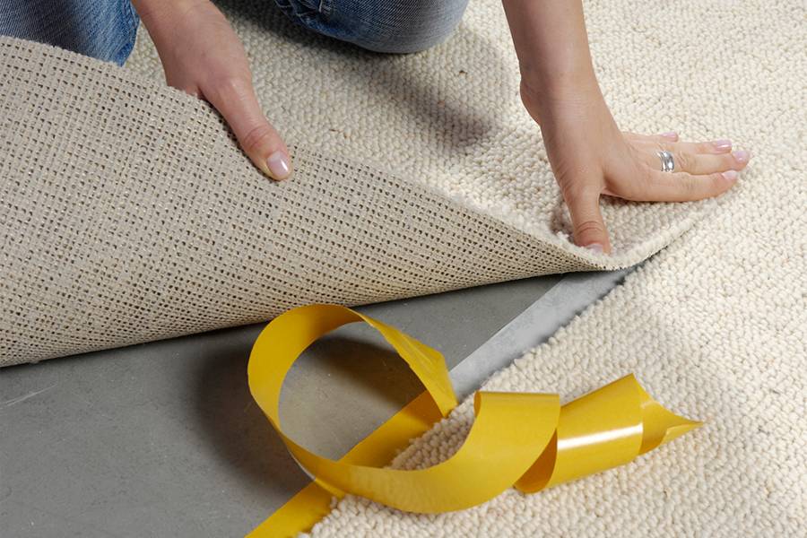 Для такой укладки потребуется специальный скотч для ковролина шириной от 63 до 180 мм. Необходимо иметь в виду, что долговечность узкого скотча не превышает 2-3 лет, а самого широкого — 5-7 лет.