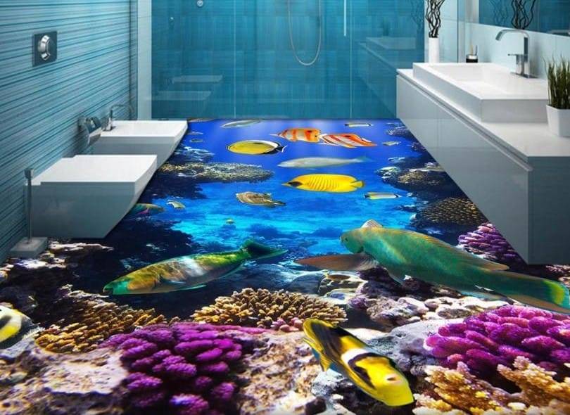 Как видите, наливной пол в ванной делается достаточно просто. Если вы хоть раз сталкивались с заливкой нивелир-массы (самовыравнивающейся стяжки), то изготовить полимерные 3d полы вам будет не так уж и сложно.