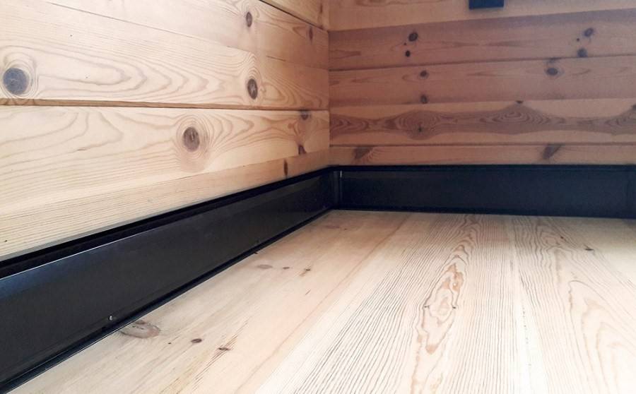 нельзя устраивать отопление по системе «теплого пола», причем это касается как водных, так и электрических систем. В первом случае потребуется дополнительная работа по устройству стяжки и, соответственно, дополнительный подъем уровня чистового настила. Во втором – велик риск короткого замыкания и возгорания древесины