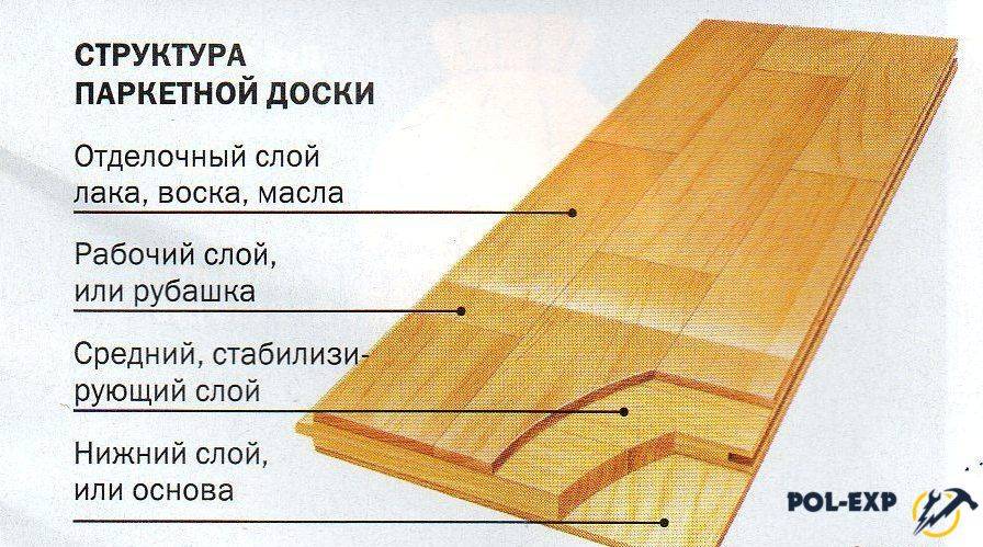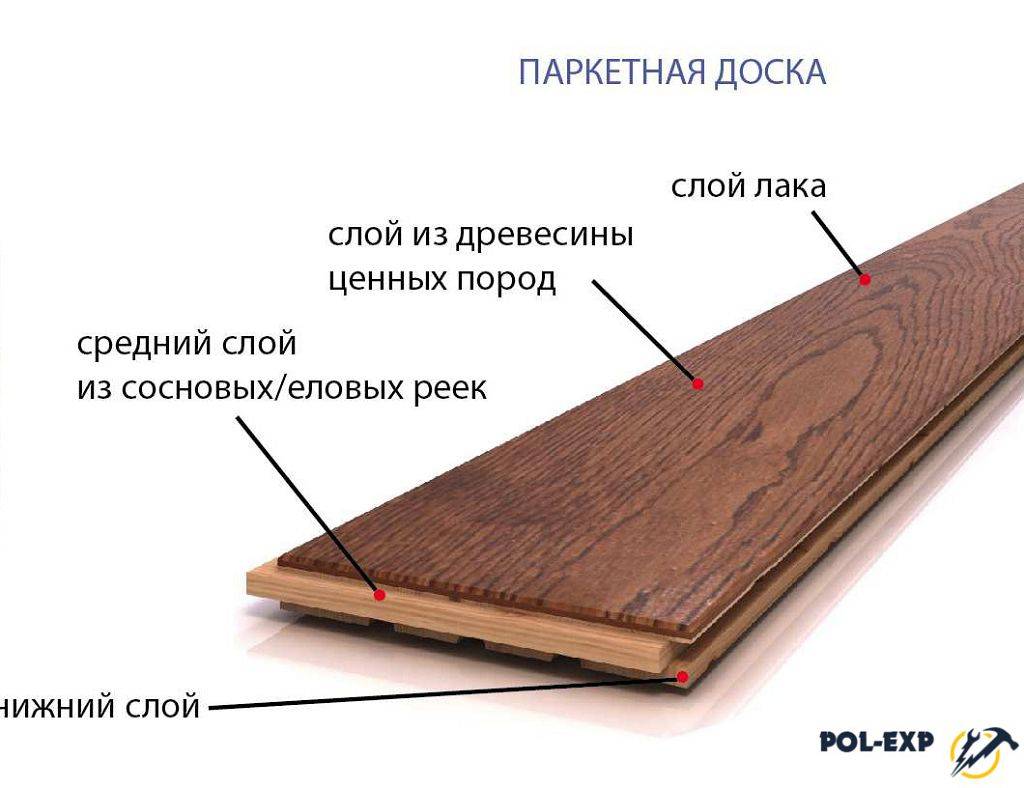 Паркетная доска отличается от обычной деревянной своей трехслойной структурой:
